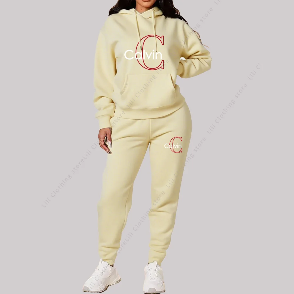 Conjunto feminino CINESSD de 2 peças com capuz, tecido quente de velo e design estético moderno. Ideal para esportes, lazer e dias frios com estilo e conforto.