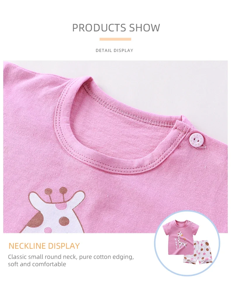 Nosso conjunto de manga curta é confeccionado em 100% algodão puro, com um tecido delicado, macio e respirável que não é fácil de empilhar e não desbota quando lavado.É adequado para roupas de verão
