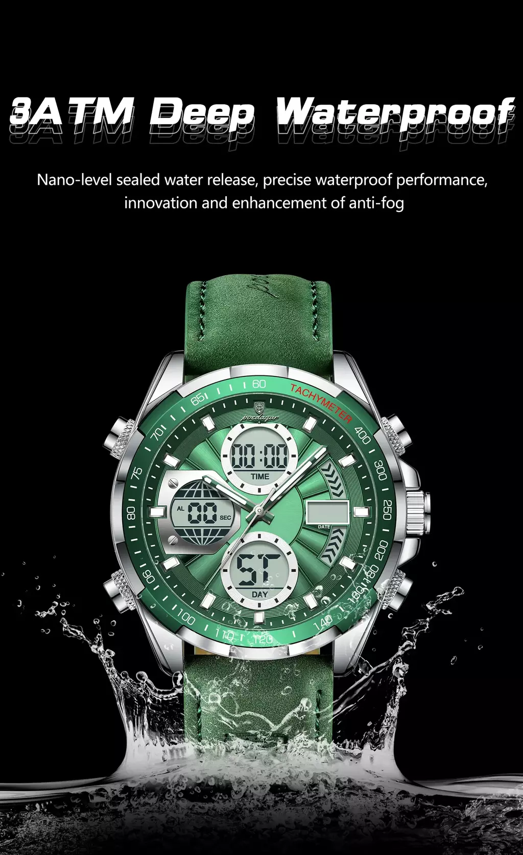 Durável, leve e pronto para ação! Relógio Poedagar esportivo com pulseira de náilon, resistente à água e ponteiros luminosos. Perfeito para treino e aventura.