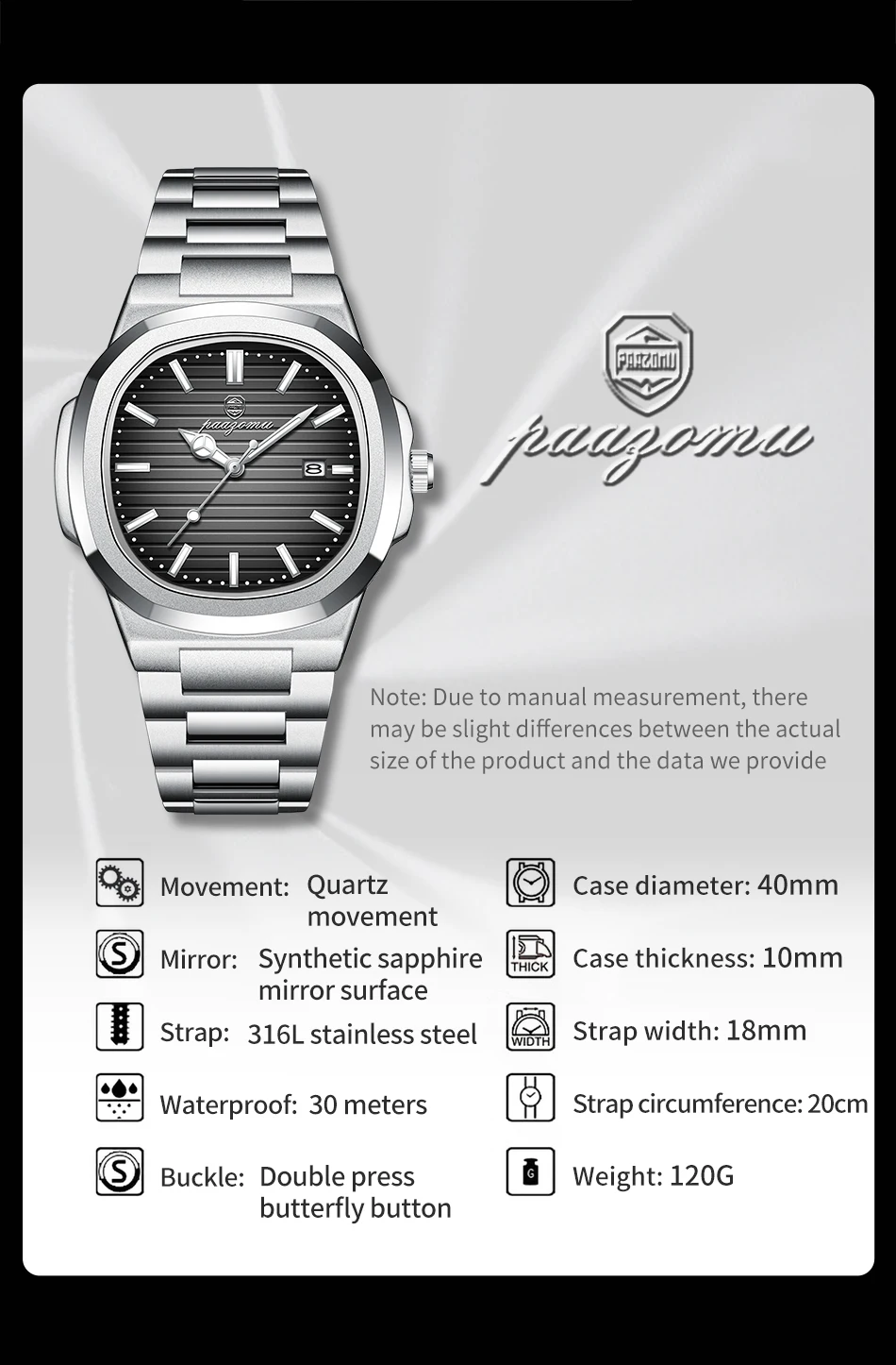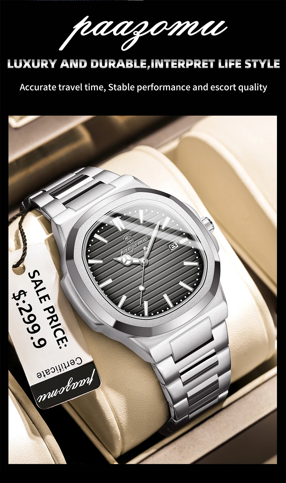 Relógio Masculino Luxo Quartzo Aço Inoxidável À Prova D’Água Vestor Paazomu - Estilo para Elegancia Casual