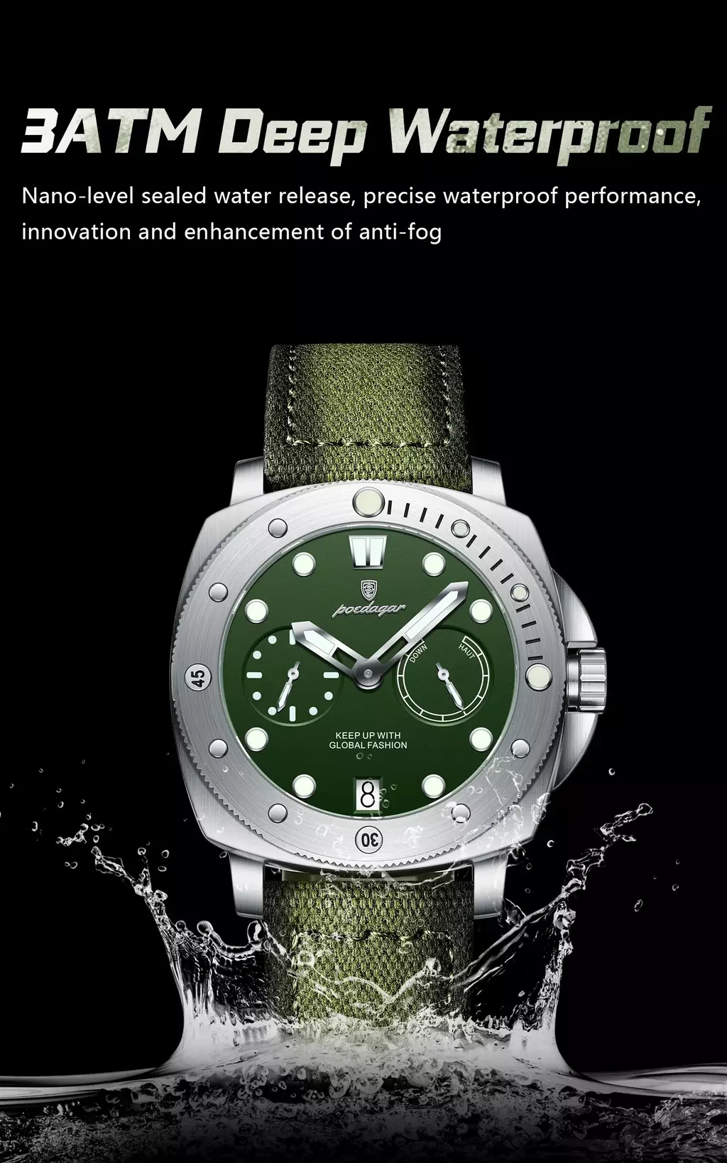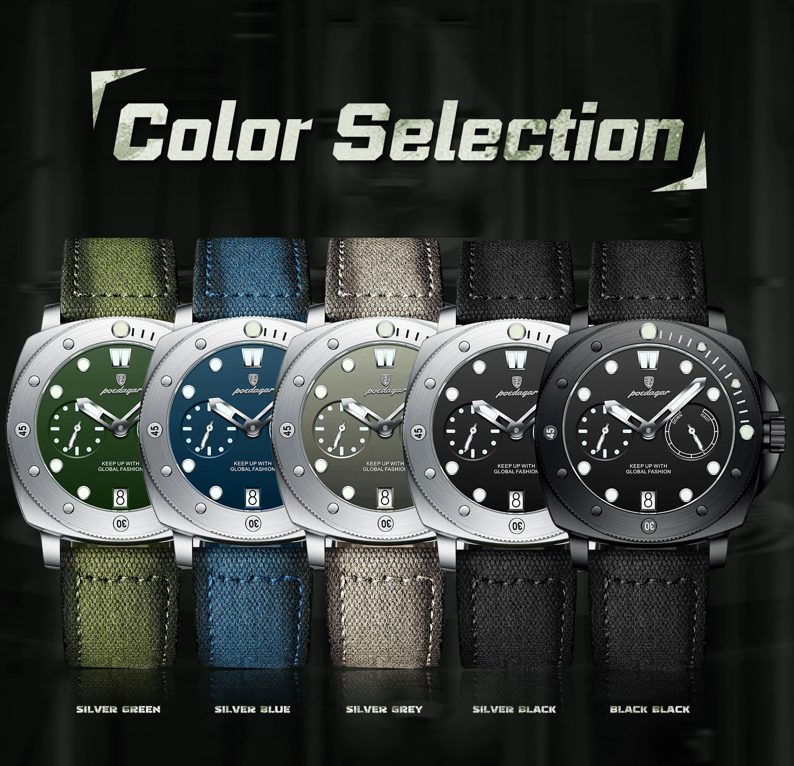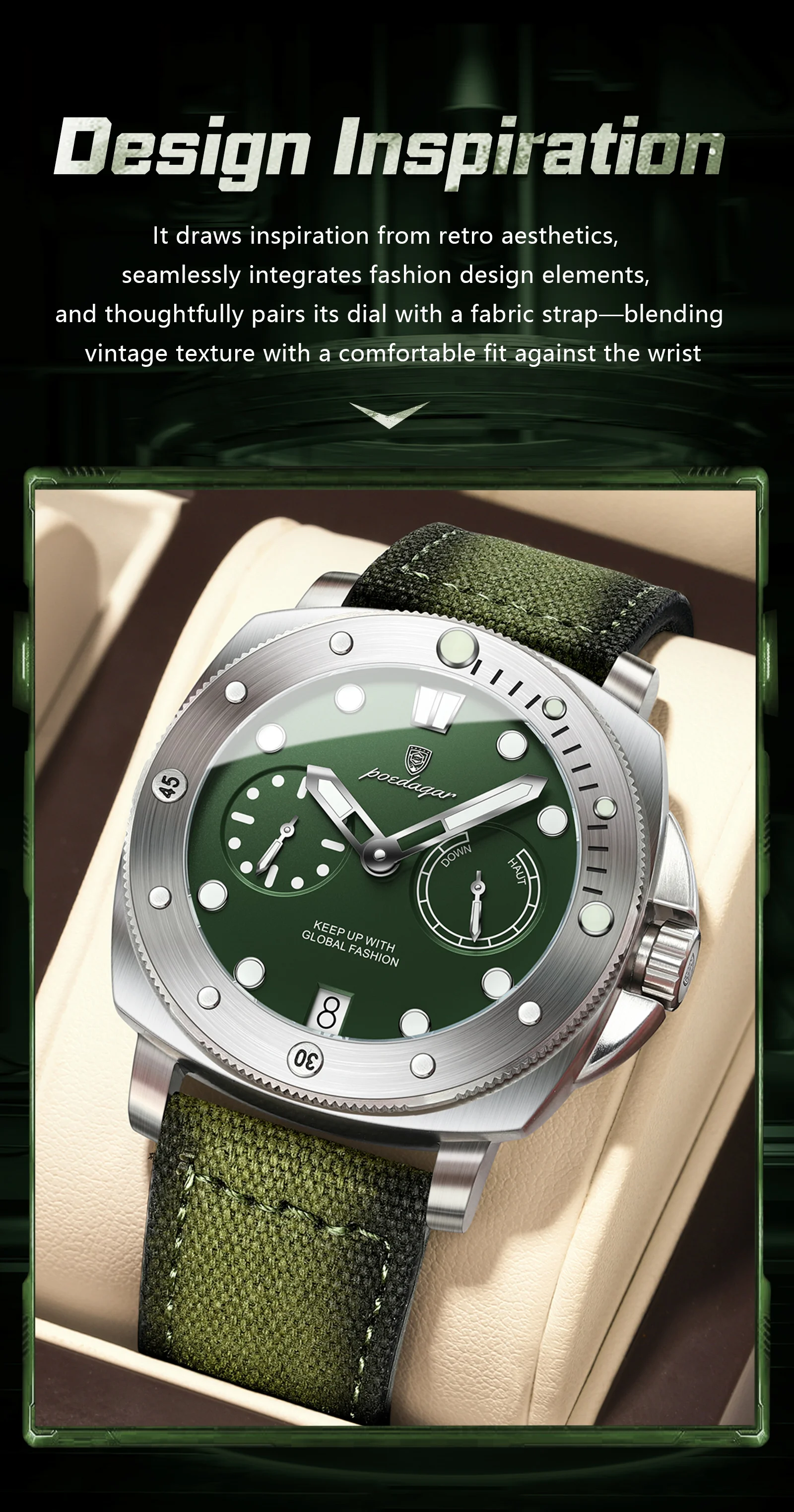 Estilo e resistência no seu pulso! Relógio Poedagar de quartzo, luminoso, à prova d’água e pulseira de náilon. Ideal para uso diário ou esportivo.